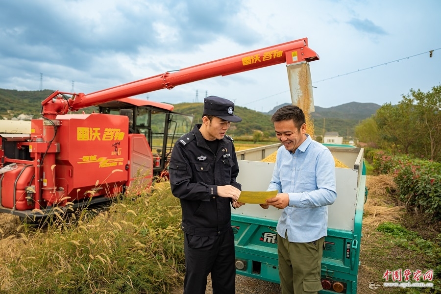 11月4日,浙江省舟山市公安局定海区分局岑港派出所民警辅警深入烟墩村田间地头,宣传交通安全与反诈知识,全力守护秋收。
