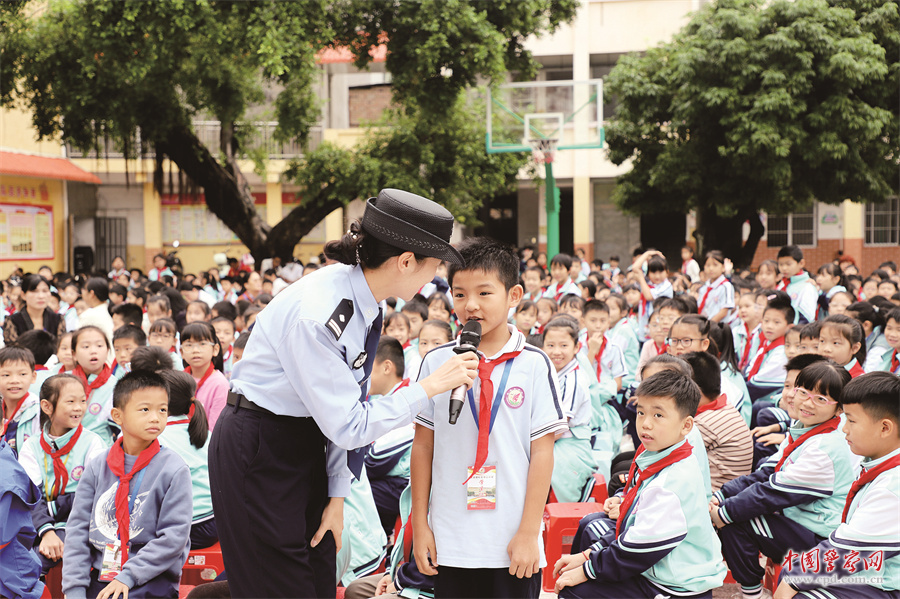 11月7日,广西壮族自治区北流市公安局在辖区小学开展反诈、禁毒、交通安全等法治宣传教育课,为小学生送上全方位安全守护。课堂上,民警用趣味案例讲解反诈知识,通过展示仿真模型普及禁毒常识,聚焦道路交通场景强调安全要点,帮助学生提升法治意识。