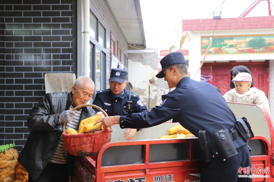 图为11月12日,民警辅警帮助群众收粮装车。穆伟东 摄