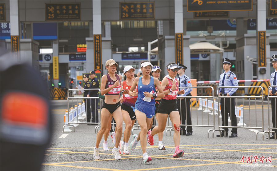 马拉松女子组运动员经过深圳湾口岸。张铮 摄