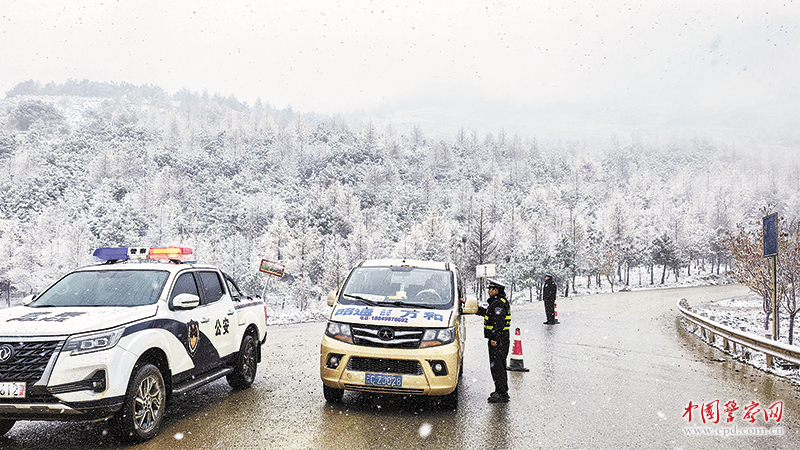 11月18日,云南省永善县部分地区遭遇降雪天气,永善县公安局交警大队迅速组织民警辅警开展隐患排查、车辆疏导等工作,全力保障群众出行平安。龙喜学 摄